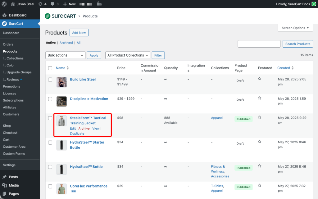 Access via: SureCart → Products → Edit (any product) → Template → Edit Product Template