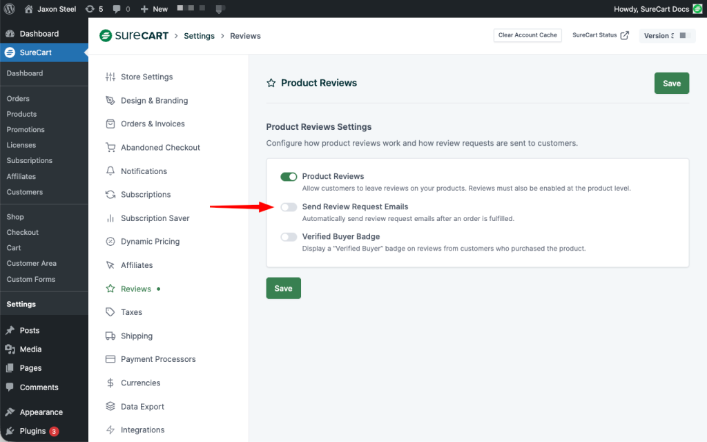 - Review Request Email: Toggle to enable or disable automatic review request emails for this product